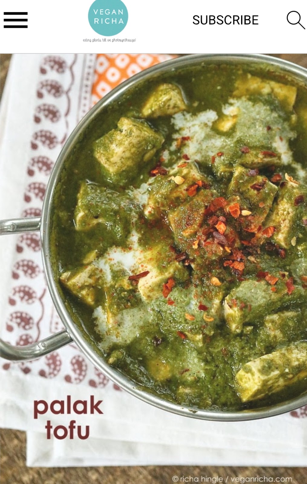 - Palak tofu paneer, which has been my signature party dish that’s always a hit